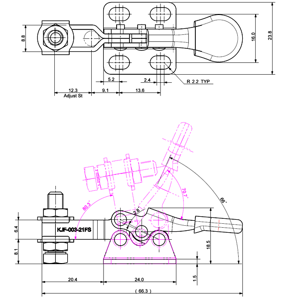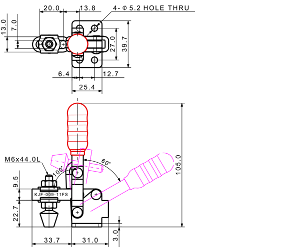 30 31 66˚ 80˚ M5 x 23.0L 12 U Short Flange Low