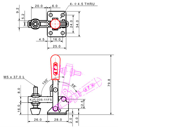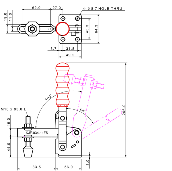 100 187 62˚ 101˚ M6 x 58.0L 34 U Short Angle Low