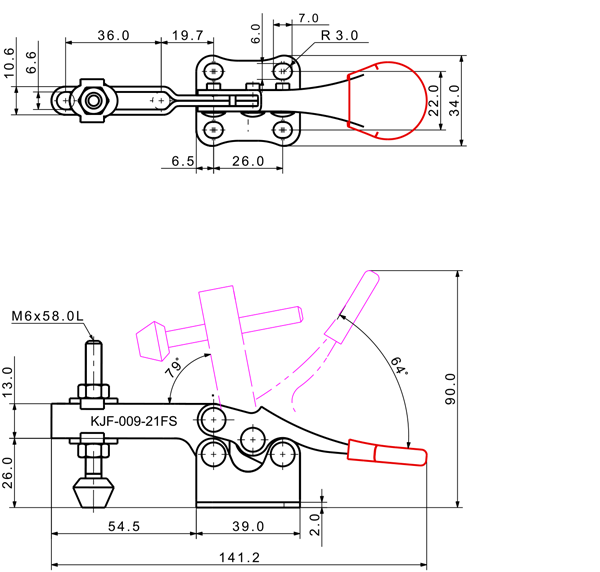 90 126 64˚ 79˚ M6 x 58.0L 36 U Short Flange Low