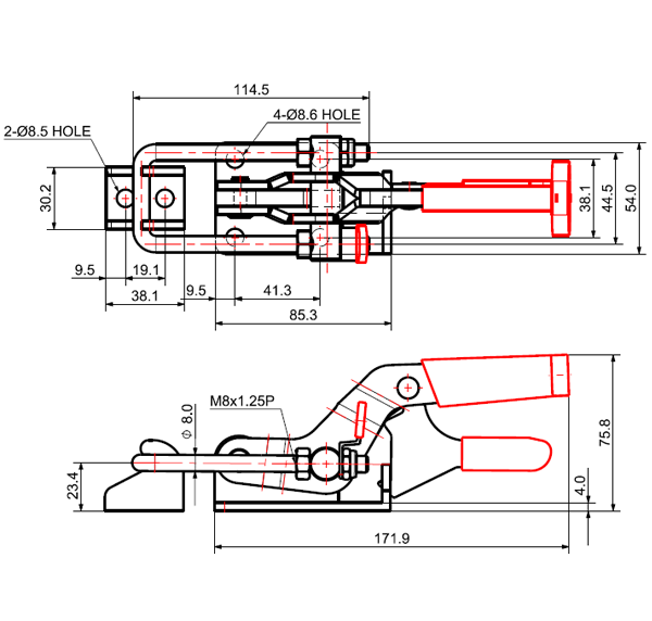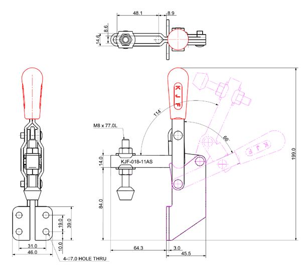 180 466 66˚ 114˚ M8 x 77.0L 48 U Short Angle Low