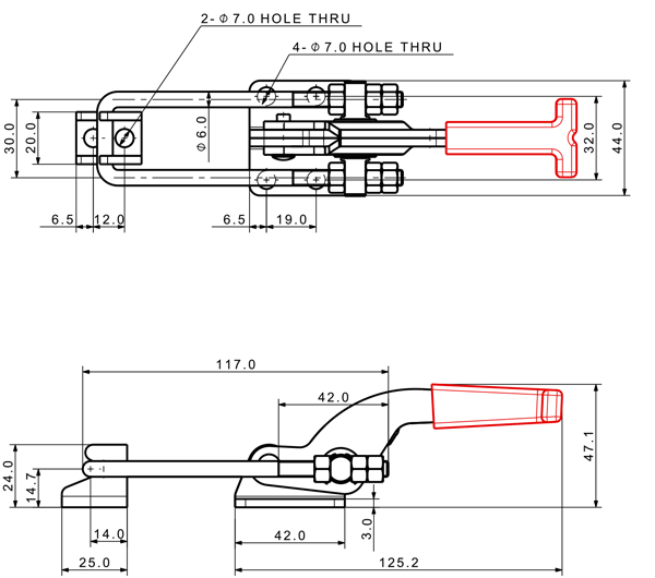 90 157 60˚ 100˚ M6 x 44.0L 20 U Short Flange Low